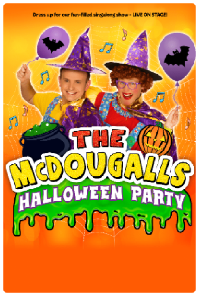 Everyone’s favourite children’s theatre company THE MCDOUGALLS are back with a spook-tacular new stage show for all the family – live on stage at Penrith Playhouse! HAPPY HALLOWEEN! Max and Auntie Aggie (the stars of the show) are dressed to impress for their Halloween Party – and you’re invited too! Come wearing your favourite Halloween costume for some fiendish, fang-tastic fun!