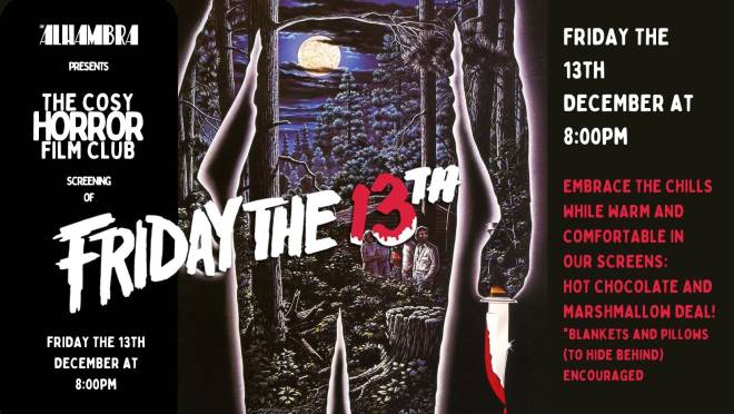 Join us for a monthly journey through horror. With a focus on films that embrace a very particular kind of movie warmth mixed in with the chills and thrills. Whether you're a horror super-fan or genre newbie, this aims to be a space in our programme for gathering together in our cosy Alhambra screens, with hot drinks, marshmallows (blankets and pillows to hide behind encouraged*) to explore the treats horror has to offer!