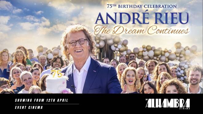 André Rieu celebrates his 75th Birthday! The King of the Waltz invites you to a boat party with him and his beloved Johann Strauss Orchestra as they sail through his hometown of Maastricht. This brand-new cinema special is a tribute to André's childhood dream of one day forming his own orchestra and travelling the world. The film features a selection of André's favourite and most spectacular global performances along with some of the finest moments the Maestro and his Johann Strauss Orchestra have shared during their many decades together. Most of the concerts featured in this film – The Dream Continues - have never been shown on the big screen before. To mark this amazing milestone, this is your chance to see these iconic André classics for the first time. Come aboard and celebrate André’s 75th in style at your local cinema!
